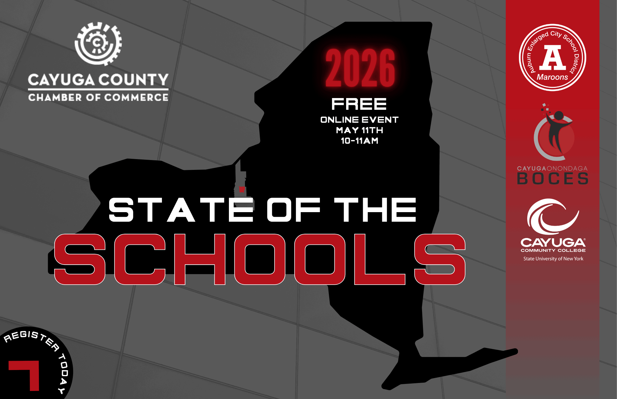 Our STATE OF THE SCHOOLS is an free online event with a virtual conversation - Monday, May 11, 2026 from 10am-11am Please REGISTER to receive the link! Join us for the STATE OF THE SCHOOLS update, featuring the Auburn Enlarged City School District Superintendent, Cayuga-Onondaga BOCES District Superintendent, and the Cayuga Community College President. Register Today! |