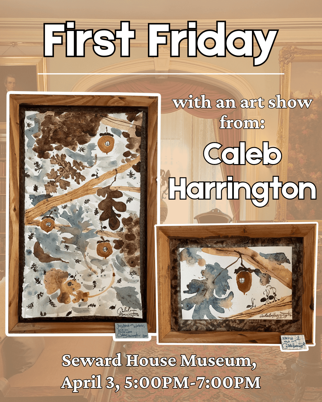 Join us for a First Friday reception. Enjoy complimentary refreshments, Museum exhibits, and an exhibit in our Gift Shop space by Ithaca artist Caleb Harrington featuring artwork made with acorn ink. This event is FREE and open to the public!