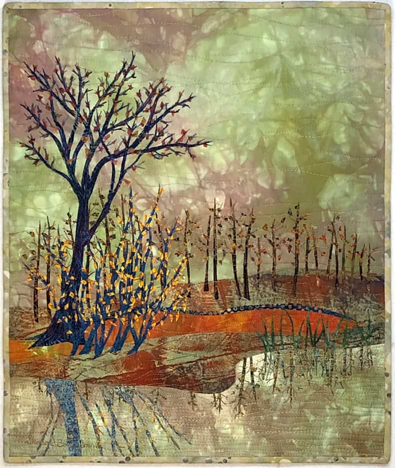Participants in this workshop will work with their own inspirational photo, painting or imagination to create a unique wall quilt. By breaking down their inspirational photo or picture to its basic design elements students will use fused appliqué and free motion quilting to realize their vision. Quilts are made in a collage method on a quilted background. Machine quilting completes and enhances the design elements. Some hand stitching may be included to complete the design. […]