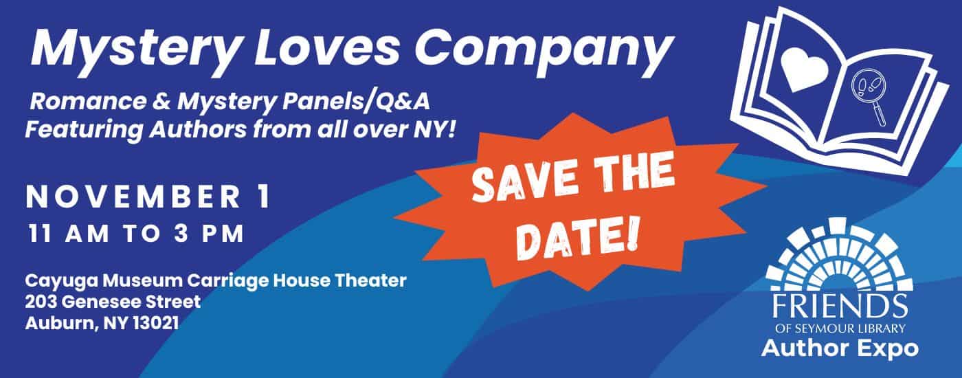 Save the date! Looking for your next great read? Mark your calendars for our 2025 Author Expo on Saturday, November 1 from 11 am to 3 pm at the Cayuga Museum Carriage House Theater, 203 Genesee Street, Auburn, NY 13021. This year’s theme: Mystery Loves Company. Get a behind-the-scenes look into the world of romance and mystery writing with not one, but TWO panel discussions: Romance Between the Covers and Murder by the Book. Panels will be followed […]