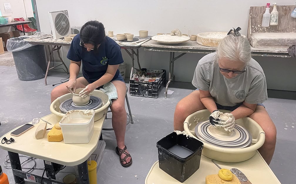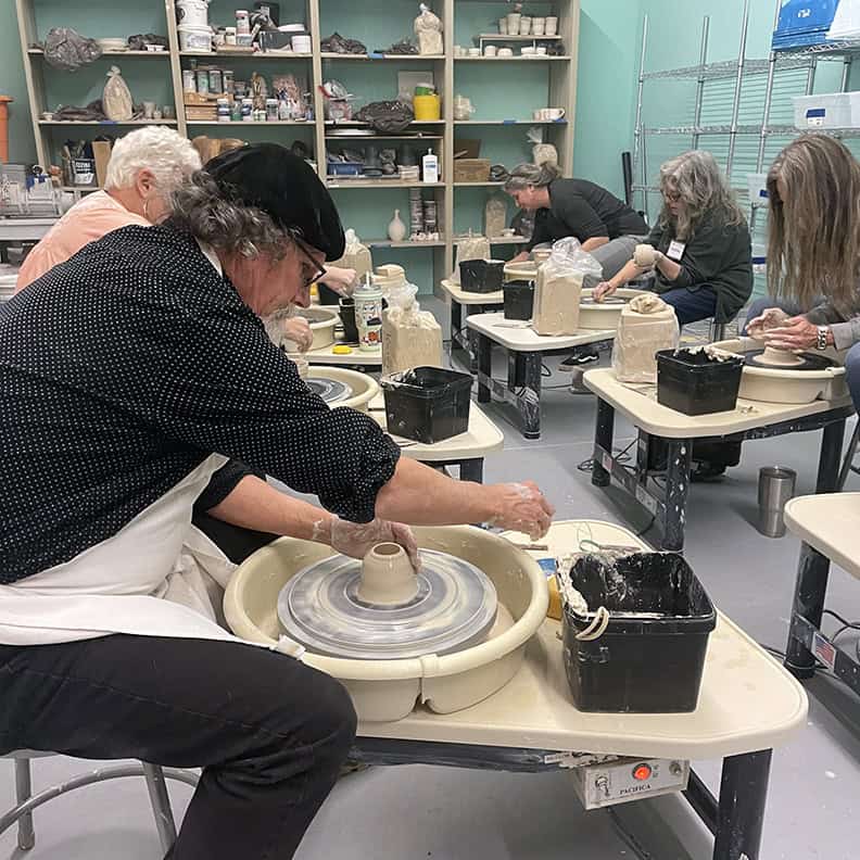 In this eight-week series, students will learn the foundational skills for throwing pots on the wheel. They will learn centering, basic throwing techniques, trimming, glazing, and more to begin their journey with clay. While this class is geared toward beginners, students who have some introductory skills that they wish to expand on are welcome. Price includes 25 pounds of clay, access to the clay studio outside of class, and use of community tools and glazes.