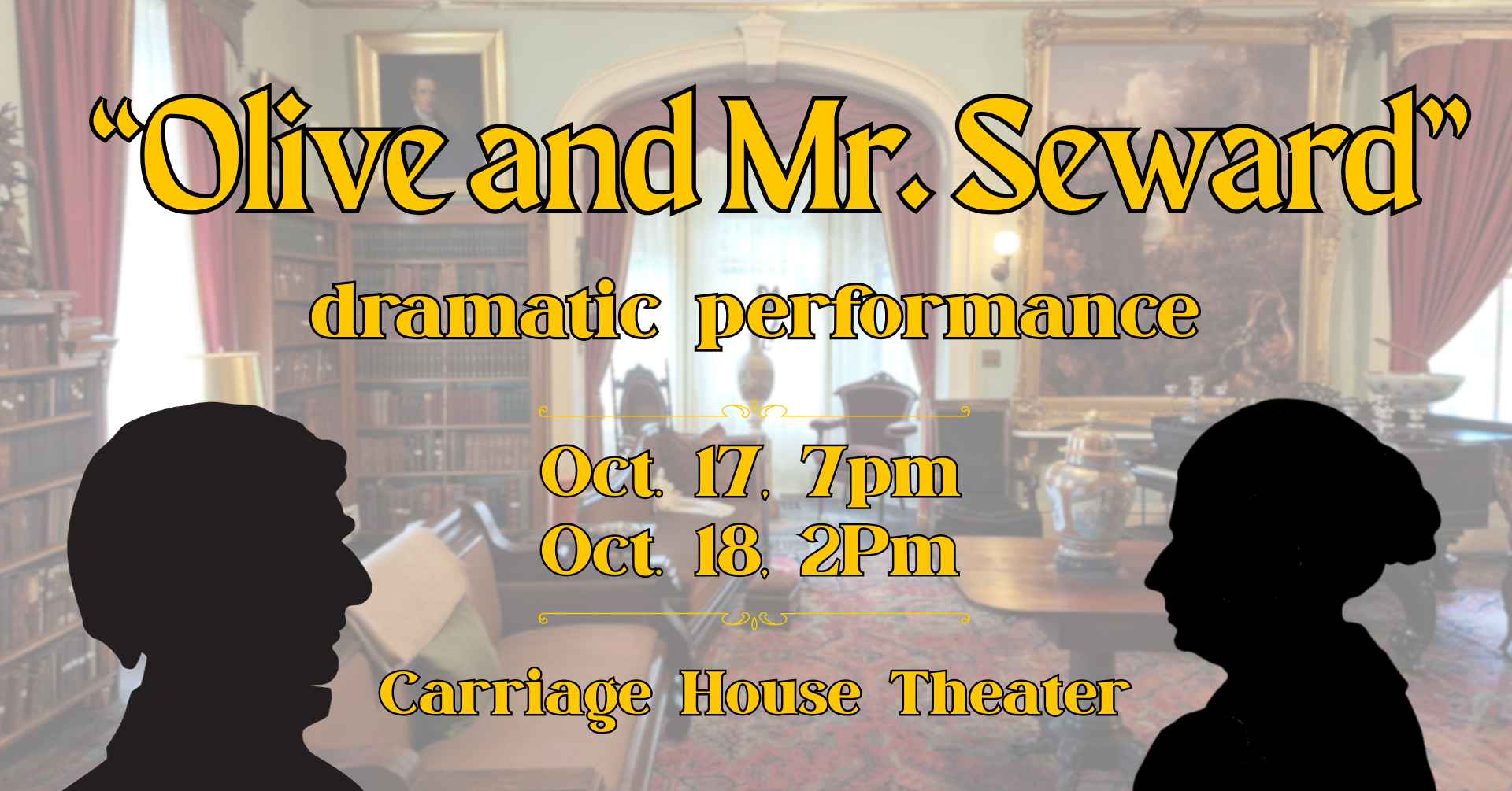 Jack Sherman reprises his role as Mr. Seward alongside Maria Coleman portraying his adopted daughter Olive Risley. This play follows the co-protagonists through Reconstruction-era Washington DC, a trip around the world, retirement in Auburn, and the final days of Seward's life. This event will take place at the Carriage House Theater. $10 Members, $15 Non-Members. Purchase tickets here: https://www.eventbrite.com/e/olive-and-mr-seward-tickets-1731015587219?a... |