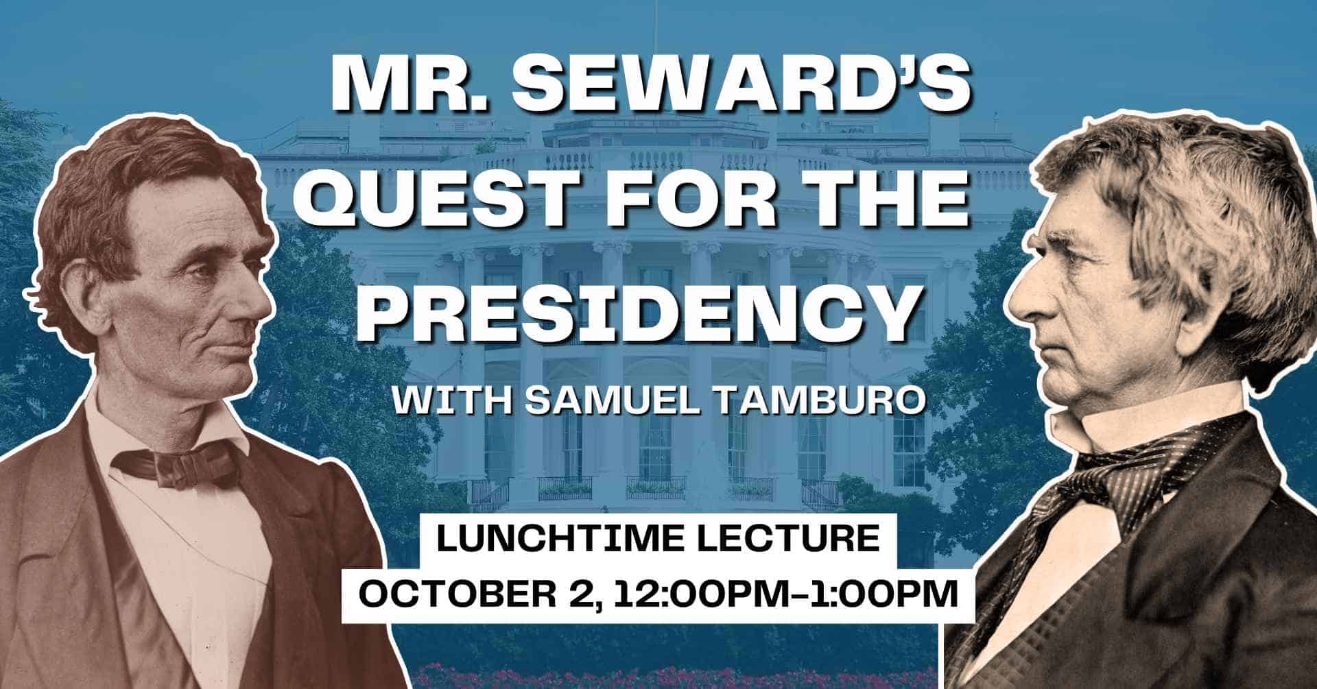 Join Samuel Tamburo - an Auburn attorney, SHM tour guide, and volunteer historian for the final Lunchtime Lecture of 2025. His talk will use primary sources to guide us through Mr. Seward's striving for this highest political office in government. This event will take place at the SHM Event Center (Barn) and is FREE and open to the public.
