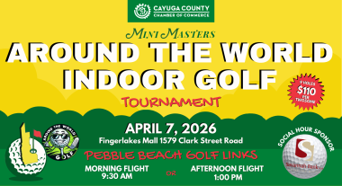 Mini Masters Around the World Indoor Golf Tournament at Around the World Indoor Golf • Tuesday, April 7th ___________________________________________________________ Email or Call Amy to REGISTER your twosome! afuller@cayugacountychamber.com or 315-612-3893 ____________________________________________________________ Tuesday, April 7th • Morning Flight (9:30am)